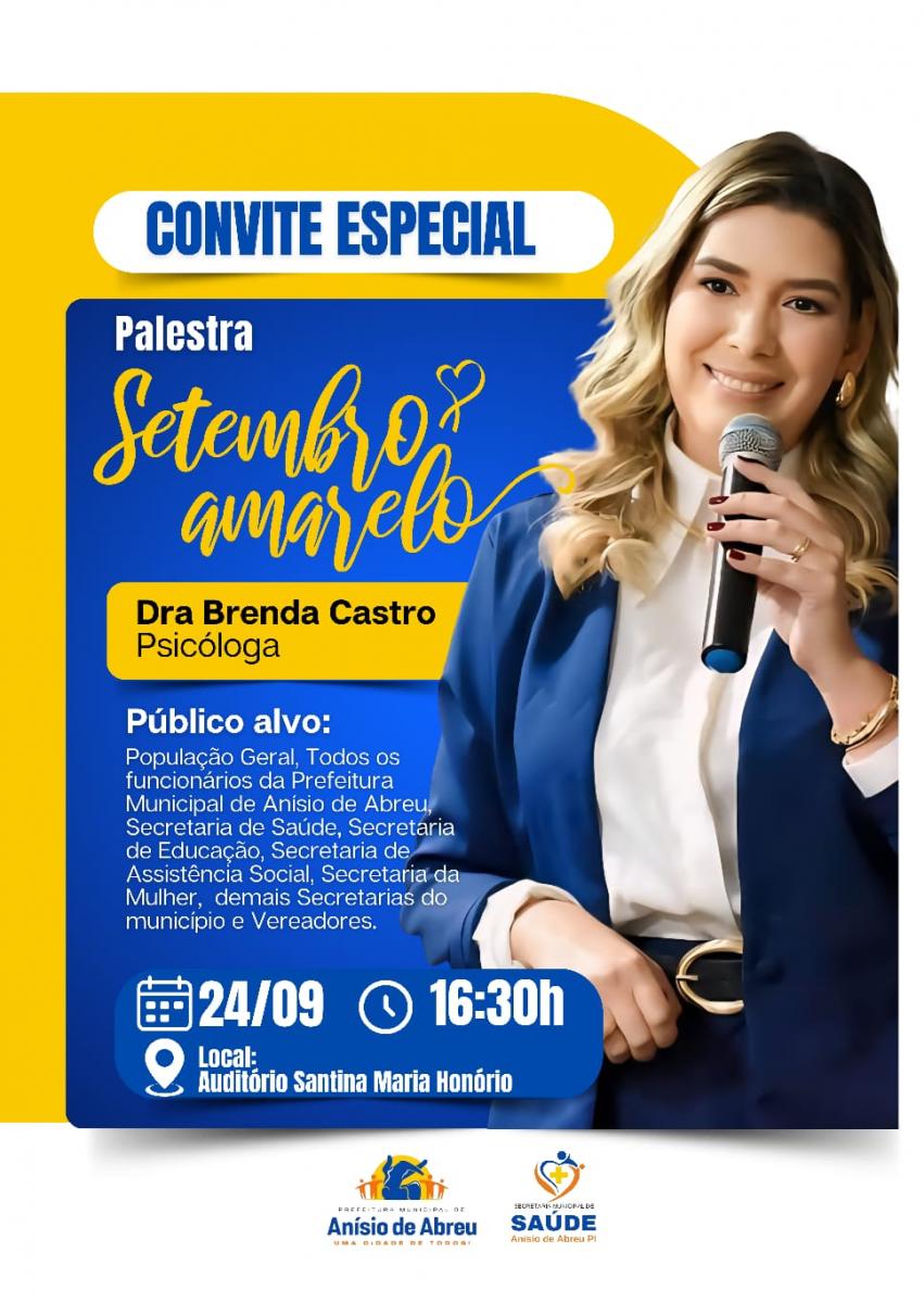 PREFEITURA DE ANÍSIO DE ABREU PROMOVE PALESTRA COM O TEMA "SETEMBRO AMARELO"