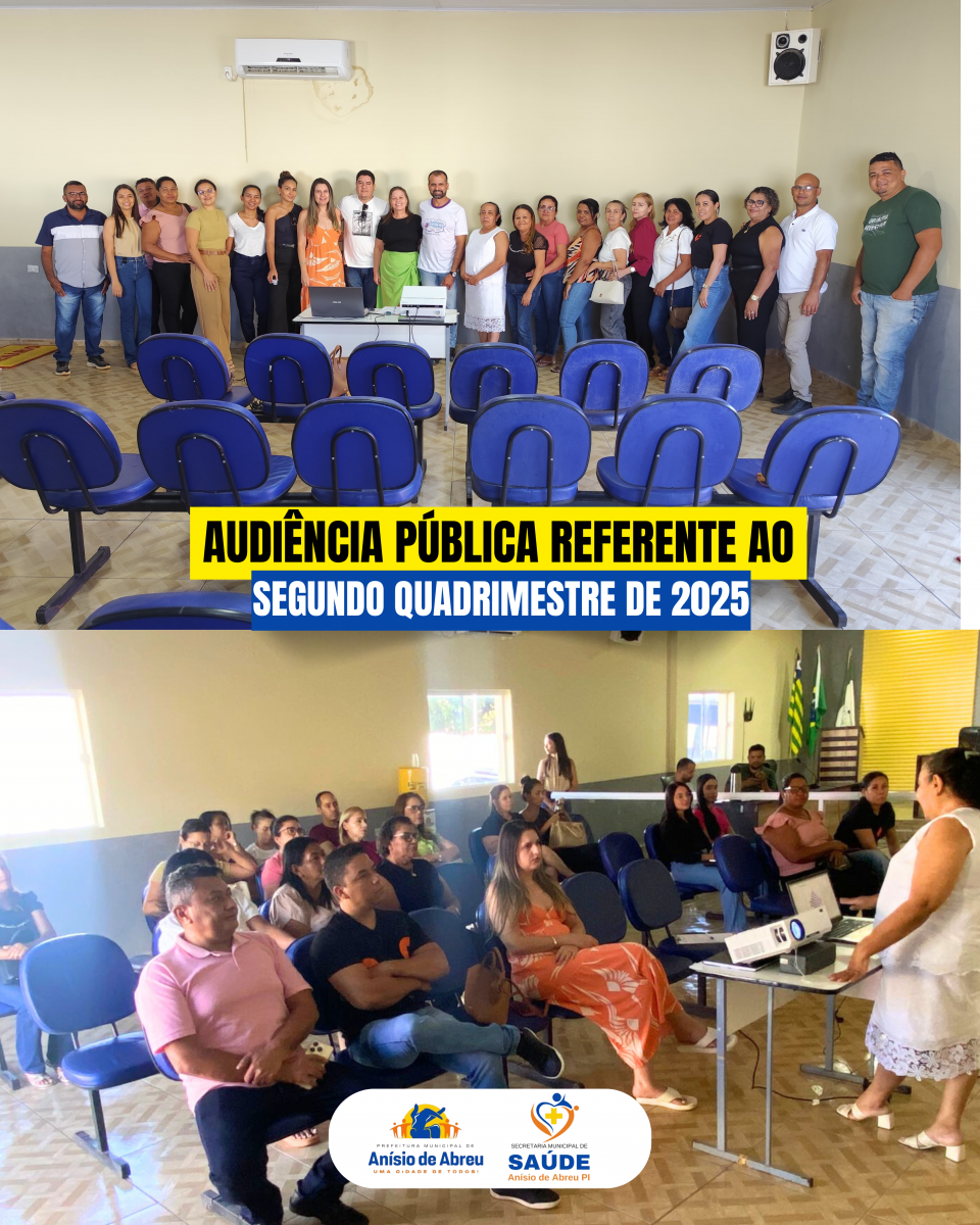 A Prefeitura de Anísio de Abreu, por meio da Secretaria Municipal de Saúde, realizou a Audiência Pública referente ao 2º Quadrimestre de 2025 no dia 29 de Setembro de 2025,às 14h, no Auditório da Câmara Municipal de Vereadores