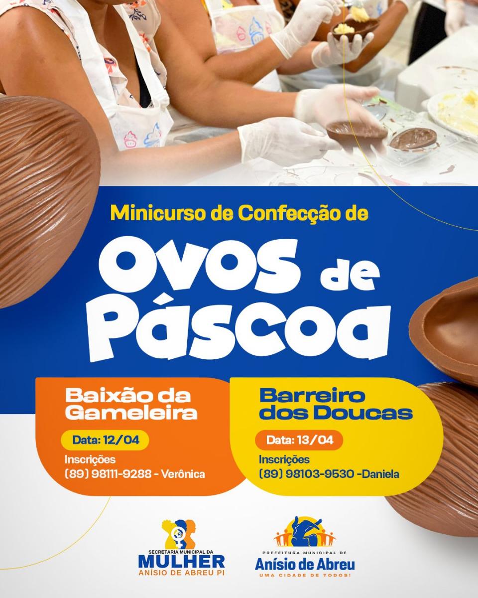 SECRETARIA MUNICIPAL DA MULHER DE ANÍSIO DE ABREU REALIZARÁ OFICINA DE OVOS DA PÁSCOA