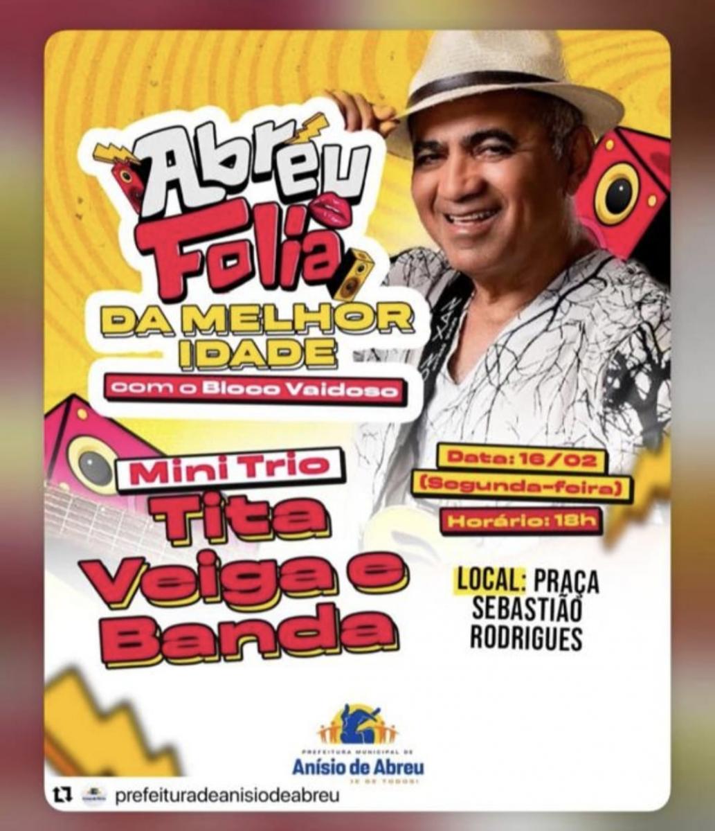 No dia 16 de fevereiro (segunda-feira), às 18h, foi realizado, na Praça Sebastião Rodrigues, o Abreu Folia da Melhor Idade, promovido pela Prefeitura Municipal de Anísio de Abreu. O evento reuniu idosos do município em uma programação marcada por música, dança e integração social. A animação ficou por conta do Mini Trio Tita Veiga e Banda, que garantiu um ambiente festivo e participativo.